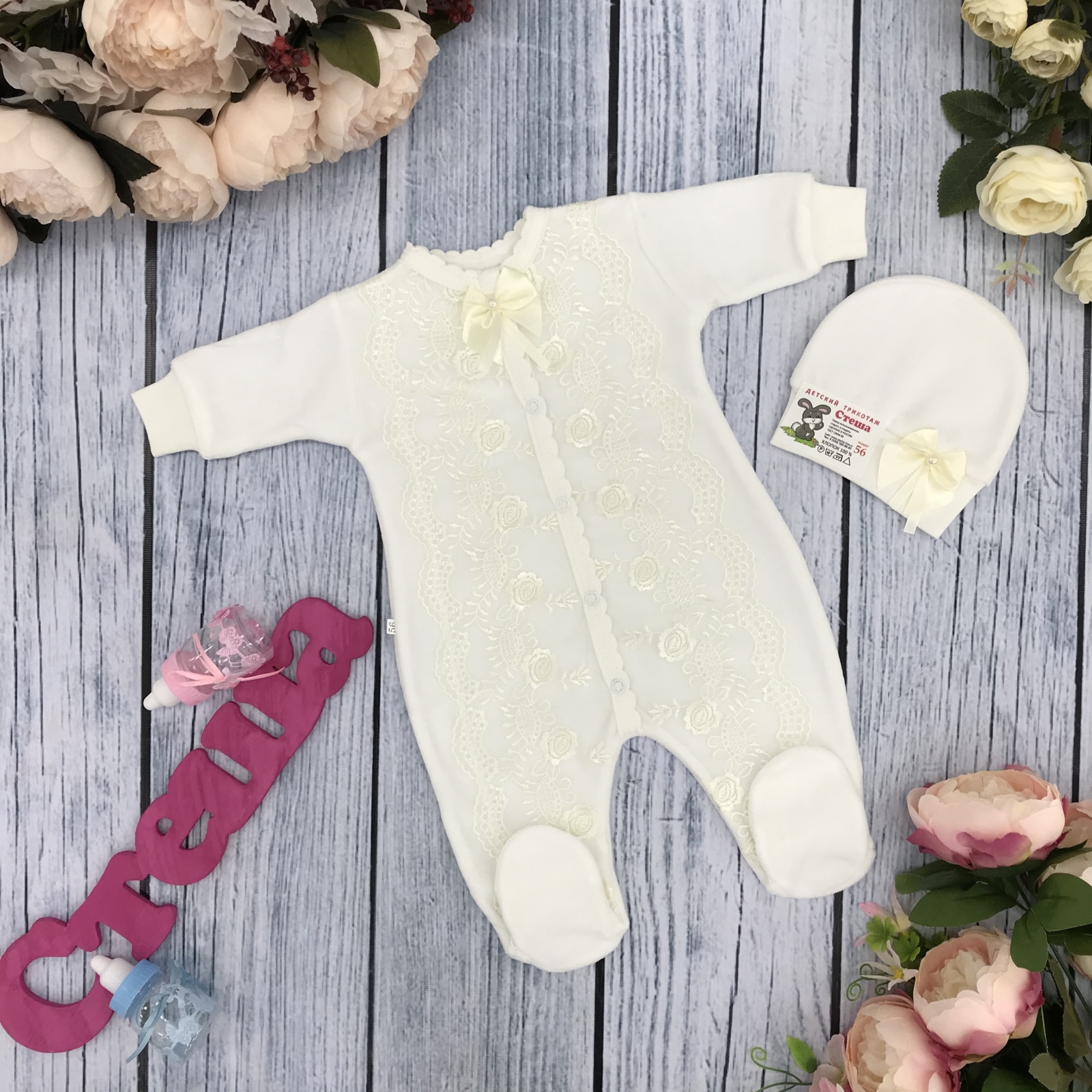 Теги: Купить оптом детский комбинезон из велюра. 264-М. Комбинезон с шапкой, хлопок 80% велюр 20% ПЭ, молочный цена,отзывы официальный сайт "Стеша Сургут"
