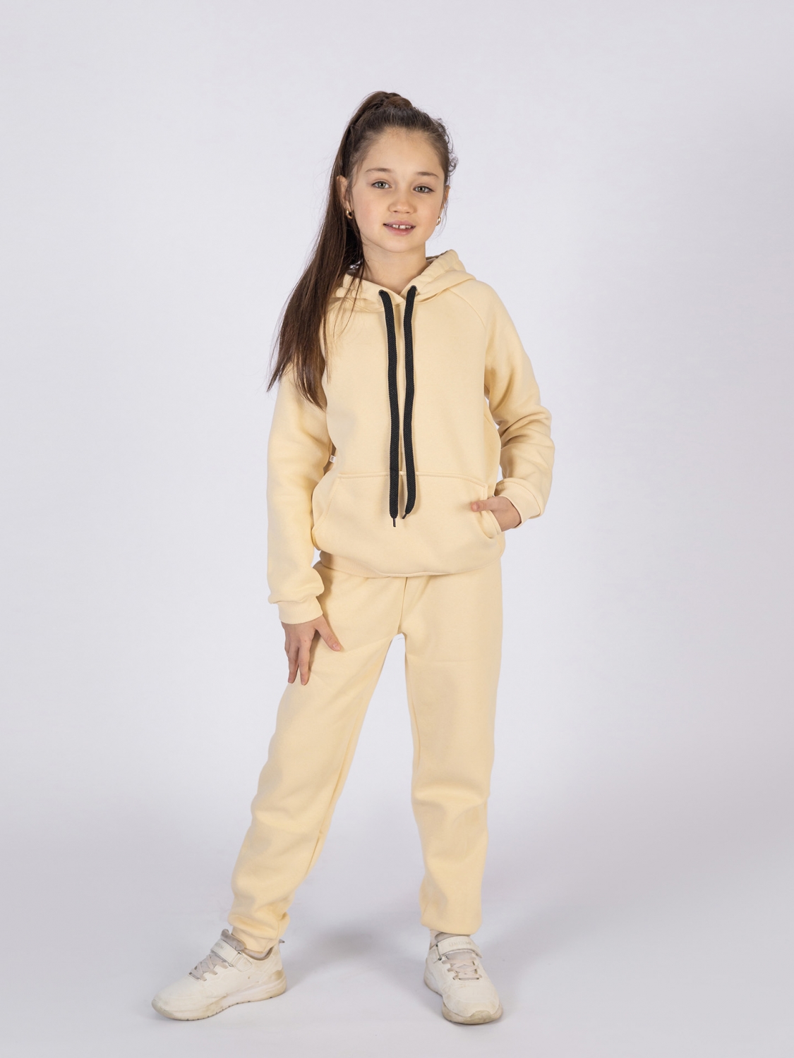Купить оптом 296-СЛ. Свитшот с капюшоном + Штаны, хлопок 65%, 35% ПЭ, 3-х нитка (начес) сливочный 122,128,134,140 в Сургуте